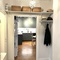 One bathrooms with a shower and a laundry machine and one guest toilette.