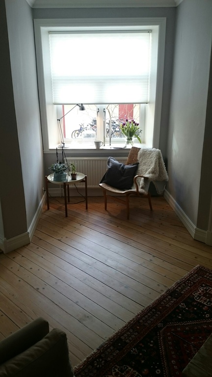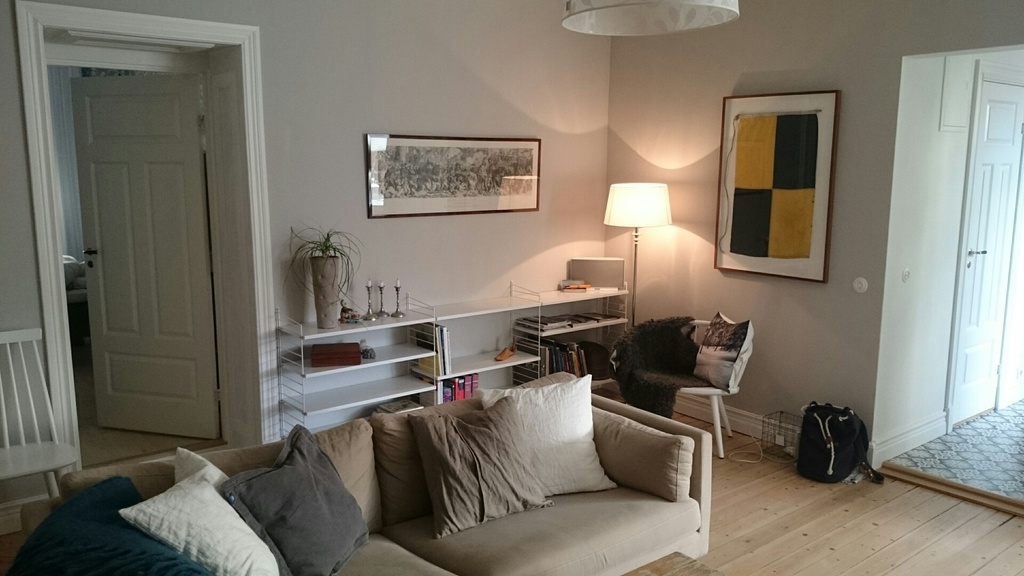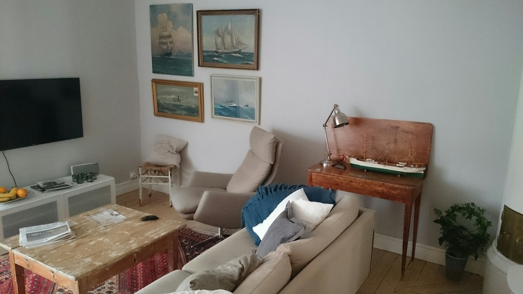 A charming apartment 70 m² on the 1st floor of an old building from early 1900's. Our apartment is on the first floor with a lovely backyard and a small garden. The apartment has 1 bedroom with a double bed and 1 bedroom with a single bed; a living room with a sofa group and a television; a modern kitchen with all appliances (microwave, coffee maker, toaster, dishwasher) and a kitchen table; bathroom with shower. Free internet access. The apartment is newly renovated and has a great atmosphere!