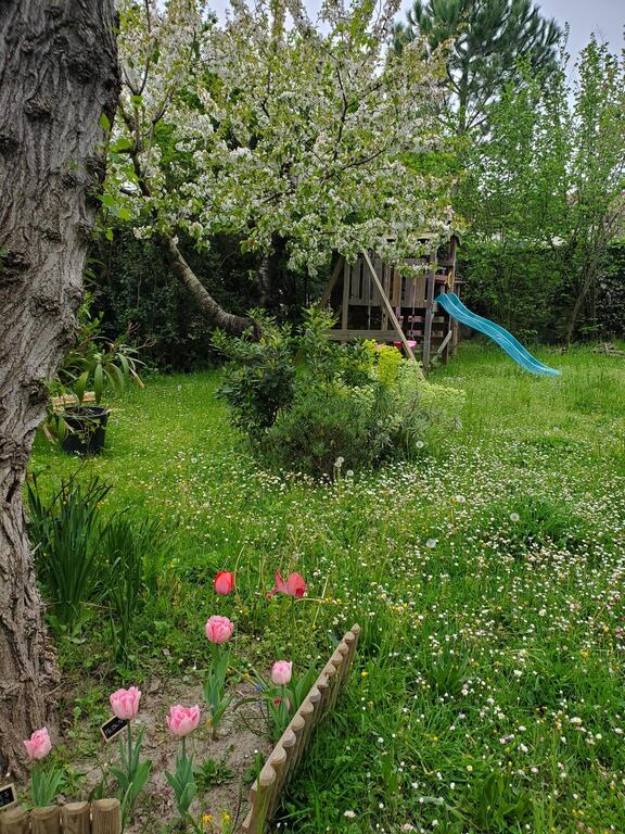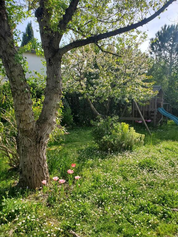 Notre jardin est entièrement clos et arboré : oliviers, figuiers, cerisiers, lauriers roses etc... Très agréable aux beaux jours! il y a aussi plusieurs terrasses, au rez de chaussée. Il y a un portique enfant avec balançoires, toboggan et une petite maison en bois.