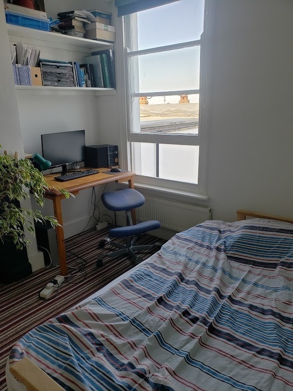 Our house is up a hill and from our front step you can see the sea. From the back of the house you can see the whole city and the sea. We are close to a lovely park full of trees, with a very nice bakery, and a primary school. The street is quiet without much traffic and the neighbours are friendly. There is a regular bus service from the centre of Brighton to bus stops only 3 minutes from our house.