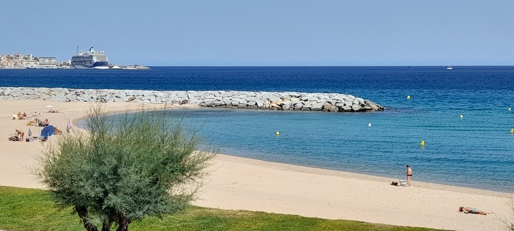 La vista de la foto está tomada desde la terraza del apartamento.Es un pueblo de verano , muy agradable cerca de Palamos y Playa de Aro , donde hay bonitas playas , tiendas , restaurantes para comer pescado ...y practicar ctividades deportivas o culturales.