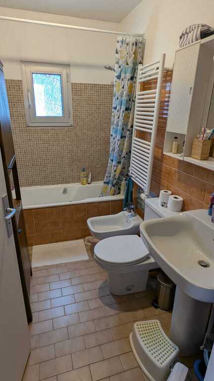 The flat is located in a quiet neighbourhood, in a condominium that has a garden with childrens' games, a swimming pool and paddling pool for children and a tennis court.