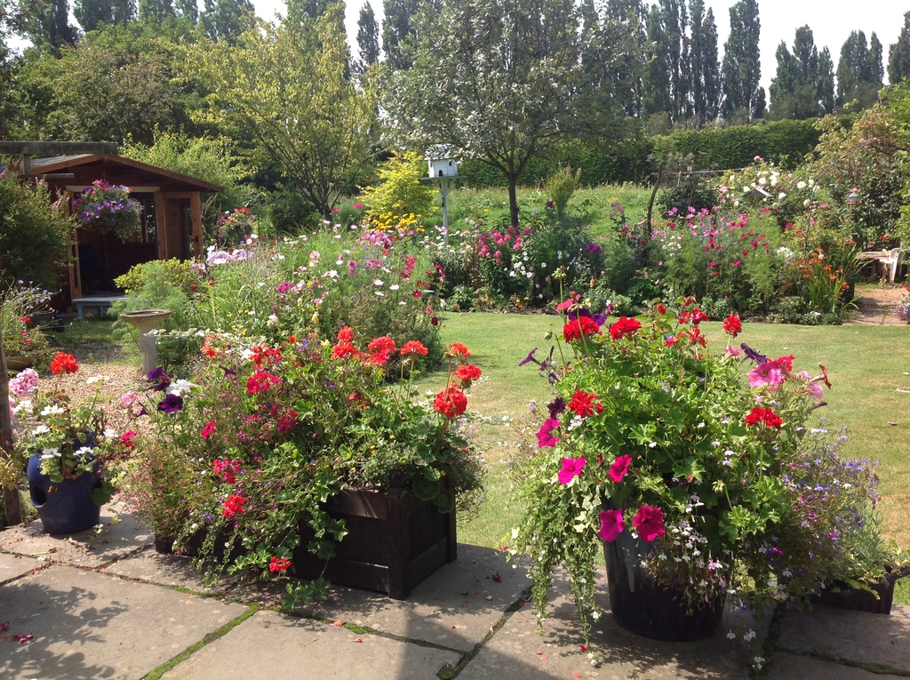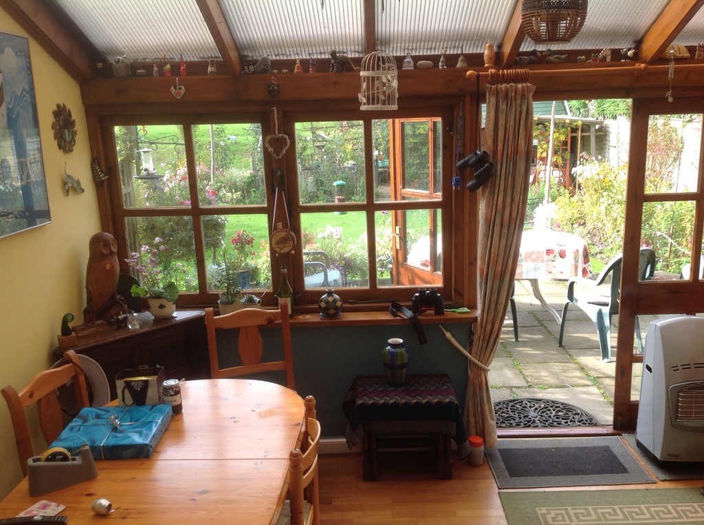 Our four hundred and fifty year old semi-detached cottage has three bedrooms and is situated up a private track in a semi rural situation on a golf course. Our cottage was originally one dwelling, but was divided into two at some point in the past: a smaller beamed cottage is attached on our other side. The cottage is full of character with oak beams, an inglenook fireplace and a large and airy sunroom opening out on to the wide terrace. Our cottage gardens, both front and back are a blaze of colour in the summer.