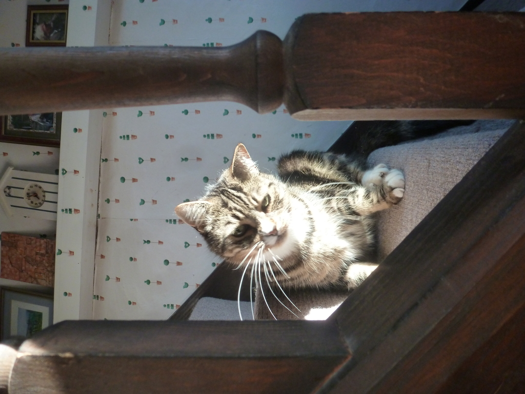 Mr Pip, the cat, usually amuses himself while wandering around the fields around the cottage. If he condescends to sit on your lap he will begin to purr like a sewing machine!