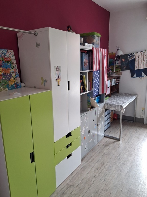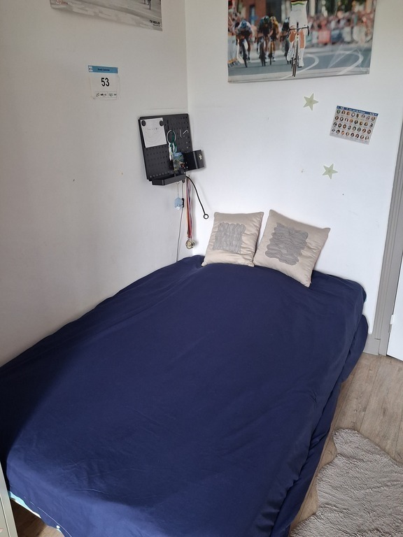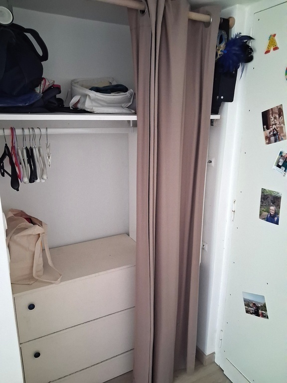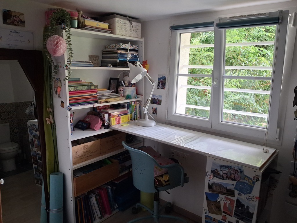 De plus, au rez-de-chaussée se trouve une autre chambre, qui ressemble à un petit studio (le plafond est bas ; seulement 2 mètres de haut 📏), avec un lit en 90, des toilettes et une douche. Cette chambre est indépendante de l'appartement et il faut descendre les escaliers des parties communes pour y accéder...bref, c'est juste parfait pour notre ado 😊 !