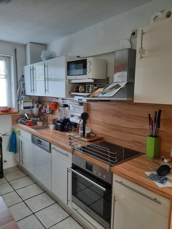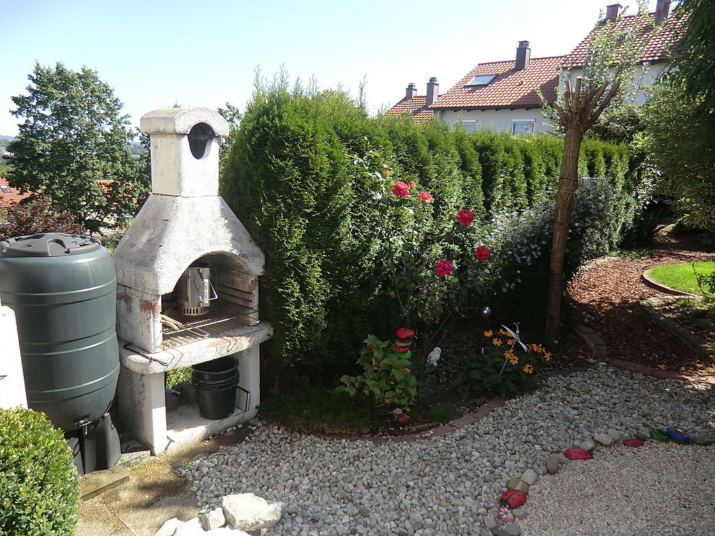 We live in a cozy terraced house with about 130 square meters and 150 square meters garden. Outside there is a covered terrace, which invites to barbecues. A stone barbecue is available.