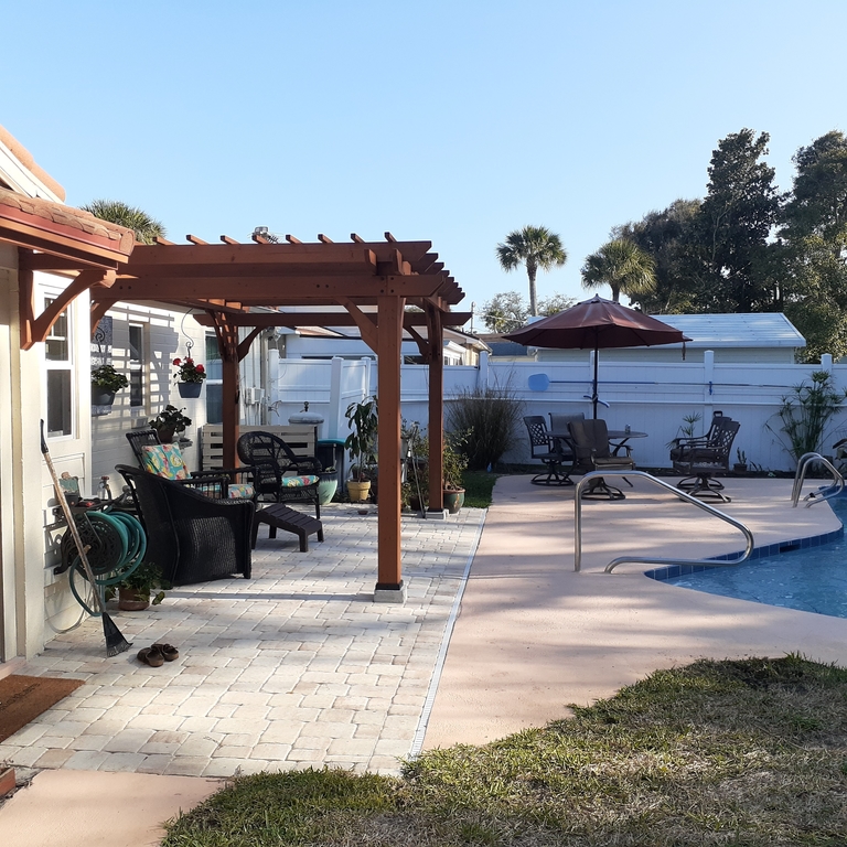 Beautiful Sunny Riverfront Home with Pool, near Famous Beaches and Orlando Entertainment Parks. Lovely, large backyard for relaxing and enjoying the sun and fresh air. We also have a home in the Pyrenees-Oriental, France, so a non-simultaneous exchange?