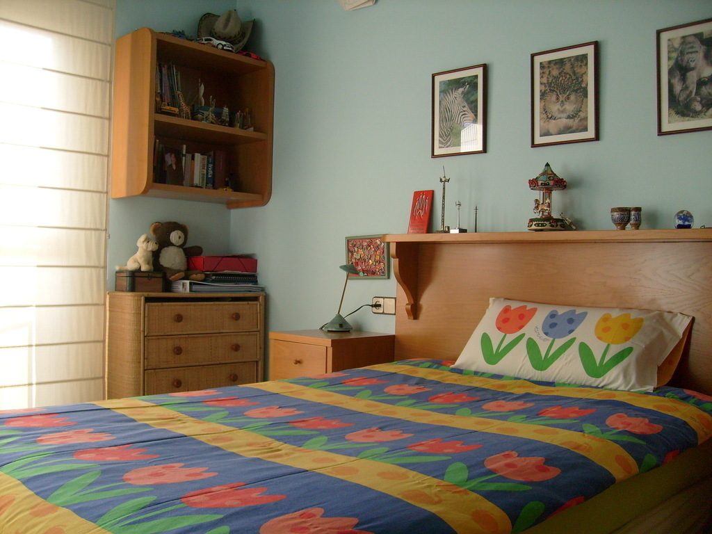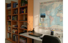 The house is a quited three storeyed and centrally located in the village, with all confort you can wish. On the ground floor, there is a big car-park with play room and garden. On the first floor, there is a big dinning-living room, a bathroom, a big and comfortable kitchen, and a little store room. On the top floor there are three bedrooms, a study room, a big bathroom and a terrace.