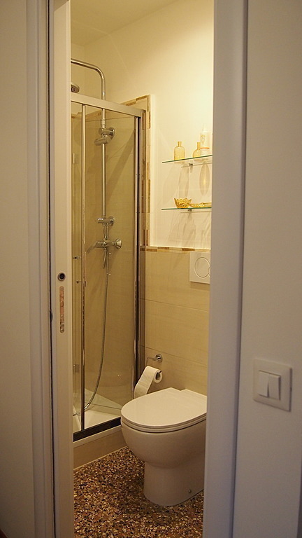 The flat is located in Giudecca Island, the biggest island of the Venetian lagoon. It is a newly restored two-storey house which dates back to the end of the 1700s. It has separate access which is located in a sunny alley highly illuminated by a public lamp post right above the entrance.