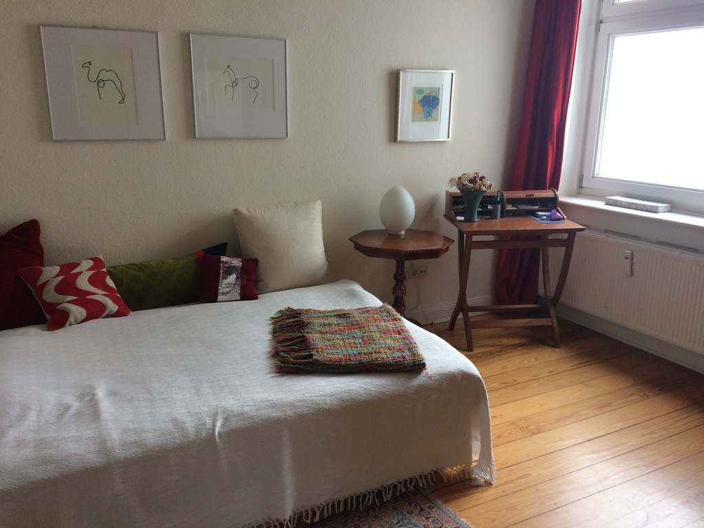 We live in a silent one way street. You can do your shopping in little shops or supermarkets nearby. There are also cafes, restaurants and a cinema in the neighbourhood. You can walk to the famous „Isemarkt“, a local farmers market where you can buy delicious products twice a week.