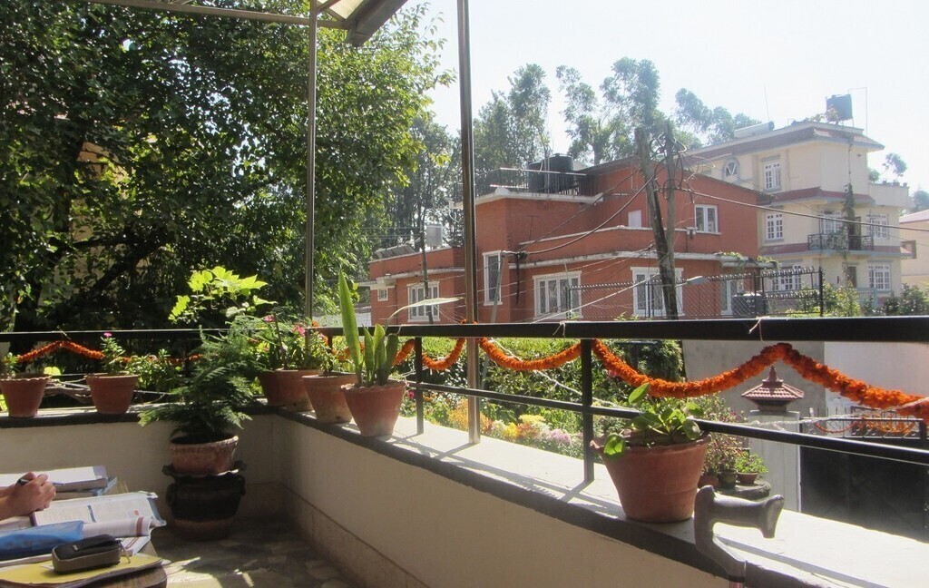 If you want a base in Kathmandu area, Jhamsikhel is the nicest part with great cafes and restaurants and with easy access to the surrounding hills as well as central Kathmandu. The house has 5 bedrooms, 5 bathrooms, a nice garden, a court yard and parking area as well as two terraces. It is spacious and light and has a lovely feel. It is well located opposite the British school