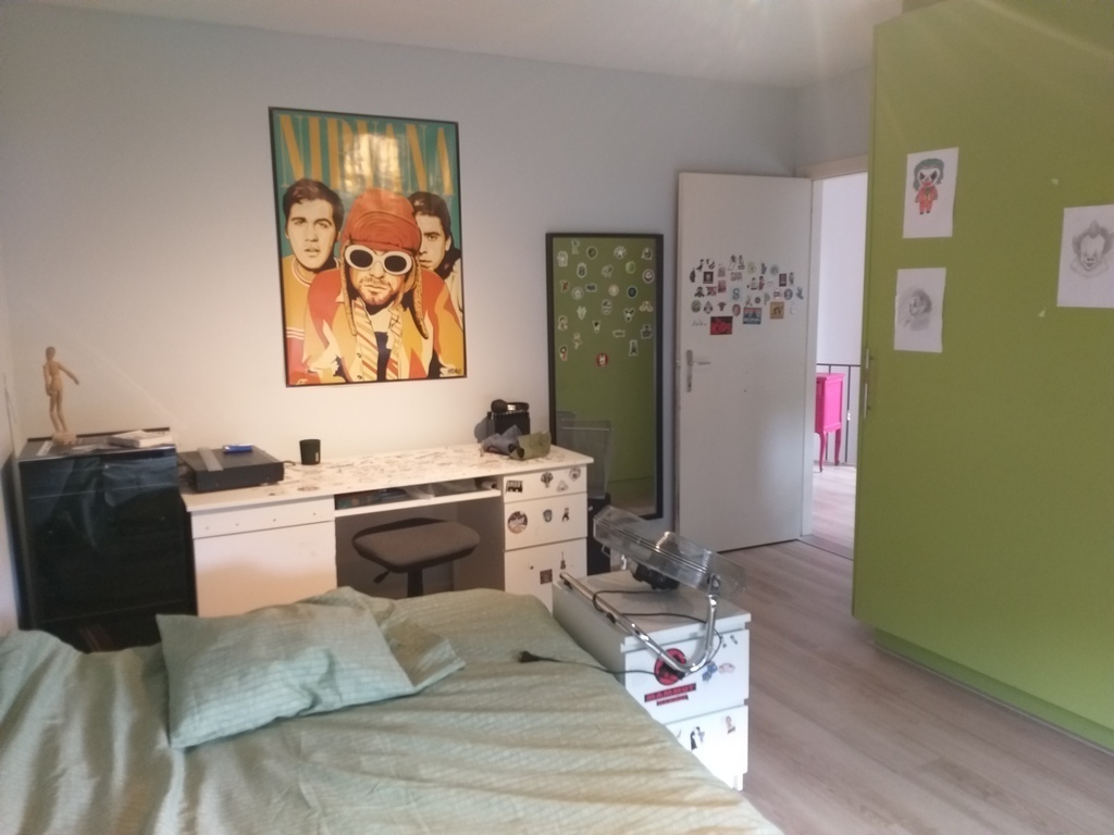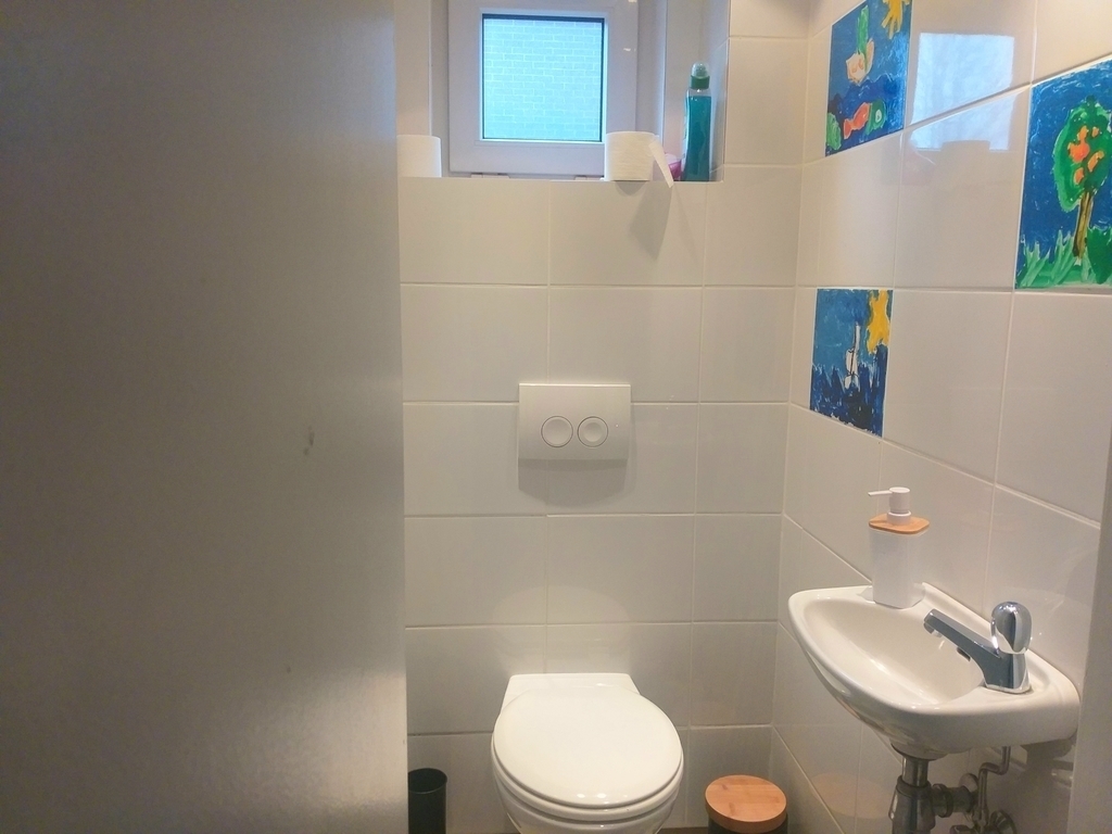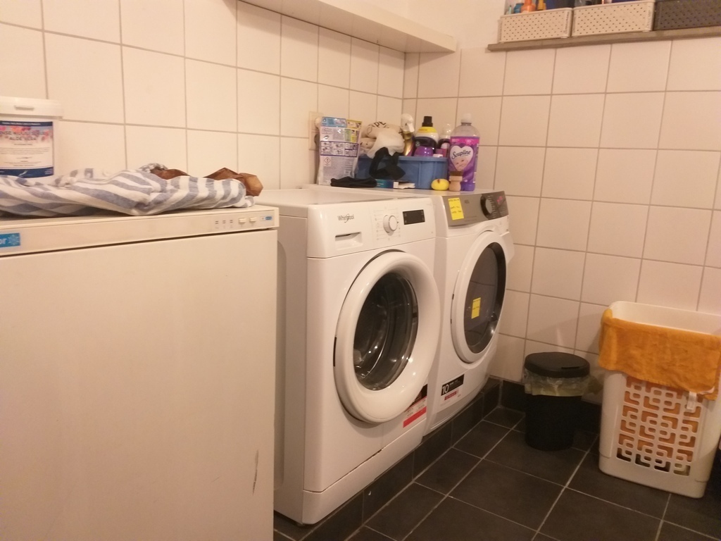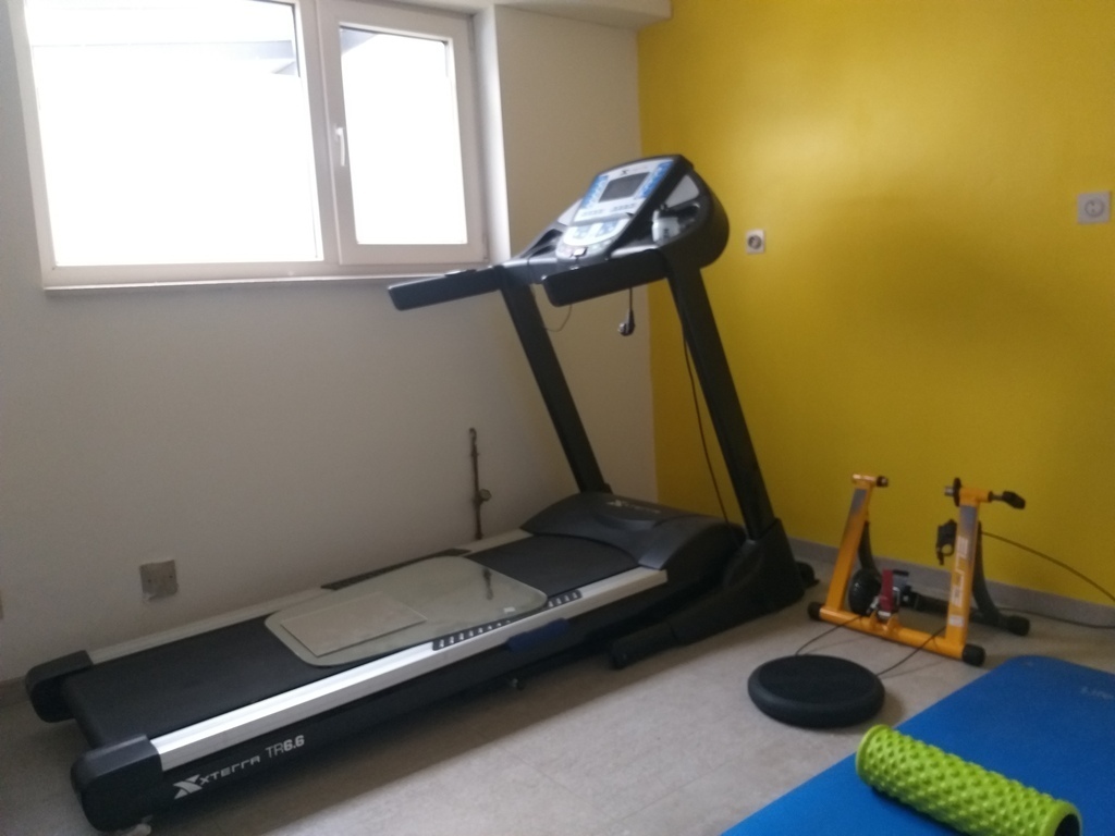 Our house have a big living room and kitchen. Also on the ground floor there is a room with shower and washing machine, a toilet, and a sporting room with treadmill. On the first floor there are 3 bedrooms and a bathroom. There is a garden with terrace, a sauna with a refreching pool and a fire place you can also use for cooking.