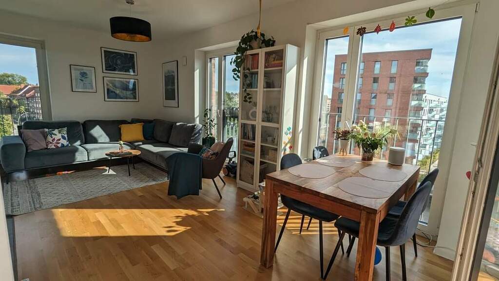Our apartment (around 80m2) has one bedroom and one child's room. There are two bathrooms and very nice loggia. The apartment is located towards the south so it is very light. We have a cat which needs a bit of care :) we would like to visit some place easy accessible from Hamburg by car +/-5-8 hours.