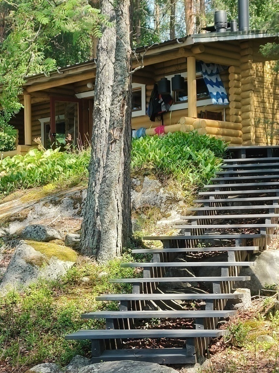 If you enjoy of nature and peace, you will find it from our summer house in Hirvensalmi. The log house is build in 1970's, but we have renovated sauna, bathroom and kitchen recently. The house is situated in a small island, Virvonsaari, where you have to row 150 meters by boat. There are two bedrooms and livinroom, in our house. There is a few more sleeping places in the unheated storehouse in summer time.