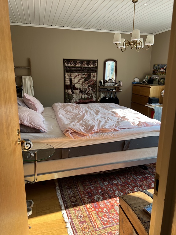 The house is located in the center of Farjestaden, 5 min walk to the supermarket and bus stop. 10 min walk to the beach, swimming and taverns. The surroundings in our neighborhood are quiet and peaceful. The garden is lush and mature. The house is a single-storey villa with a laundry room in the basement. Open plan with kitchen and living room and hall. Two bedrooms, both with access to the terrace. You need to take care of some plants on the veranda and give them water.