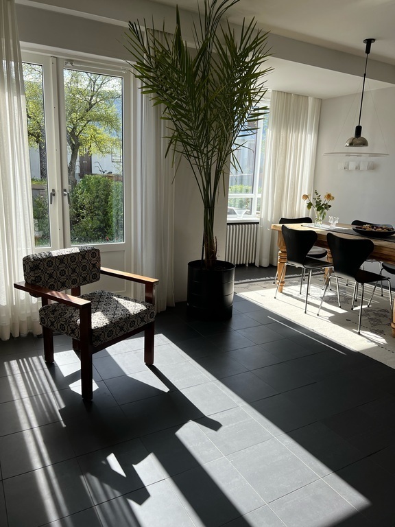 An attached house (150 m2) ca 5 km from Reykjavík city centre. The house has three floors with nice garden with a patio, and is in a row of six houses. In the basement is a large bedroom/TV-room, with a sofa-bed that can be converted to a proper double bed, and a bathroom with a washing machine a dryer. On the ground floor is living- and dining room and the kitchen. The first floor has a bedroom with a small balcony, a double bed and a small sofa-bed suitable for kids (teenagers) and a bathroom with a shower.