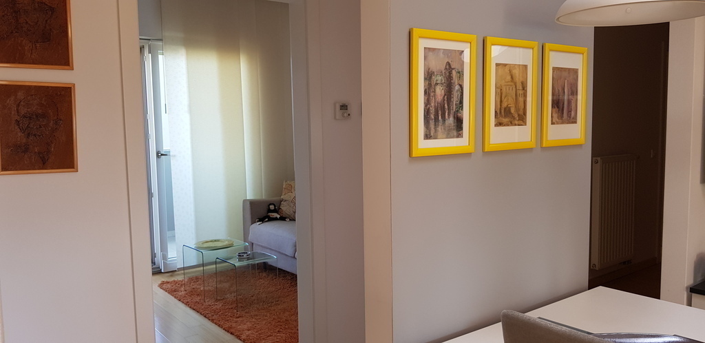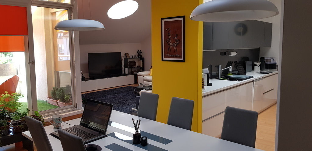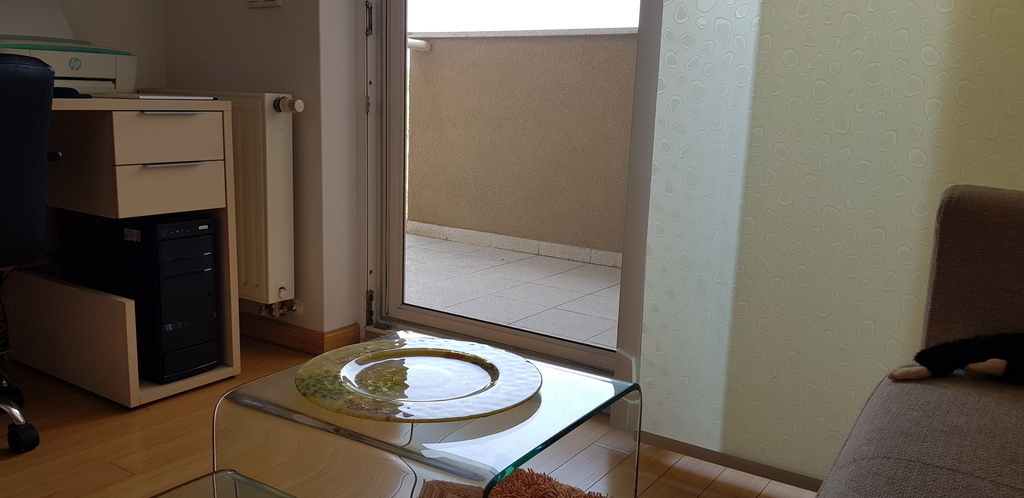 A spacious apartment on the third floor of a building (with a lift), with balconies on the opposite sides (northeast-southwest). It's located in the very centre of Velika Gorica, only 20 minutes’ drive from the Croatian capital Zagreb. The building is about 10 years old, so fairly new. A large living room is open to the dining area and the kitchen. The main bedroom has a 160 cm wide bed, whiles a spare bedroom (usually used as an office, with a work station), has a sofa-bed (160 cm wide, when opened). The kitchen is fully equipped, with a refrigerator/freezer, gas stove, electrical oven, microwave oven, a dishwasher and various small appliances (a kettle, Nespresso machine, ice cube maker, rice cooker, juicer, toaster, etc.) The bathroom has both a shower cabin and a tub. There is a washing machine/drier in the bathroom, too.