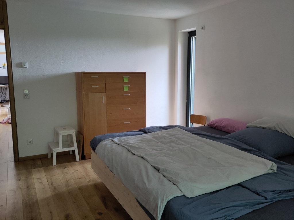 In the basement there are opportunities for loundry of course and additionally a bathroom with shower and toilet and a bedroom with a big double bed.