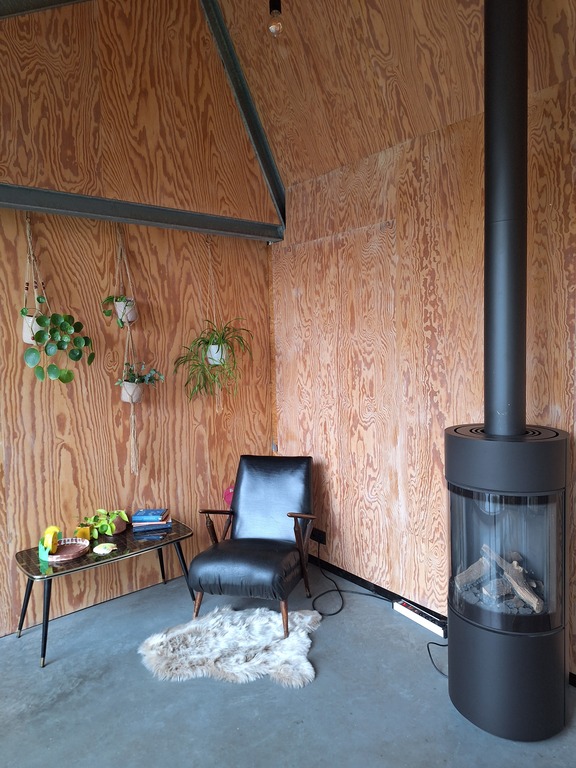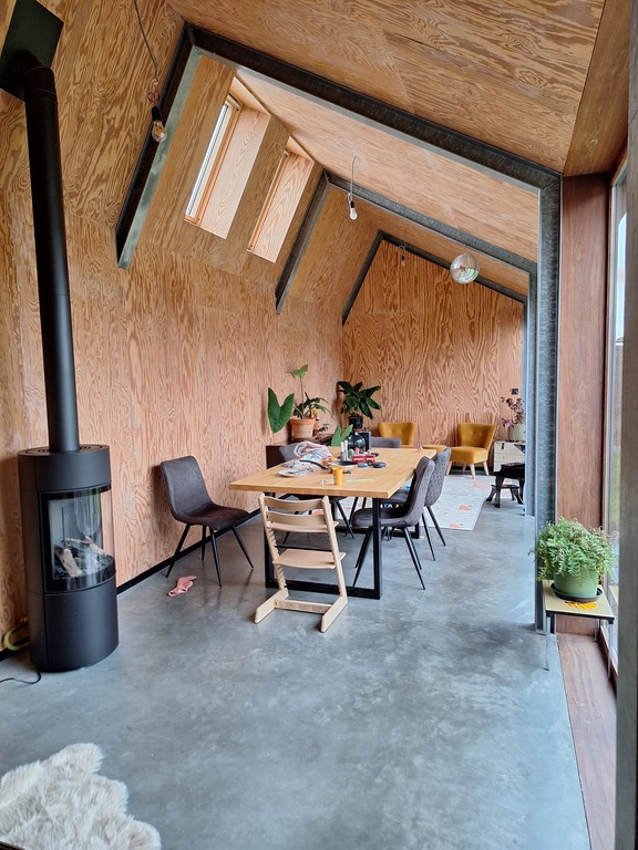 The home features 3 bedrooms (including 1 child’s room), a bathroom, a cozy wood stove, and a comfortable living area.