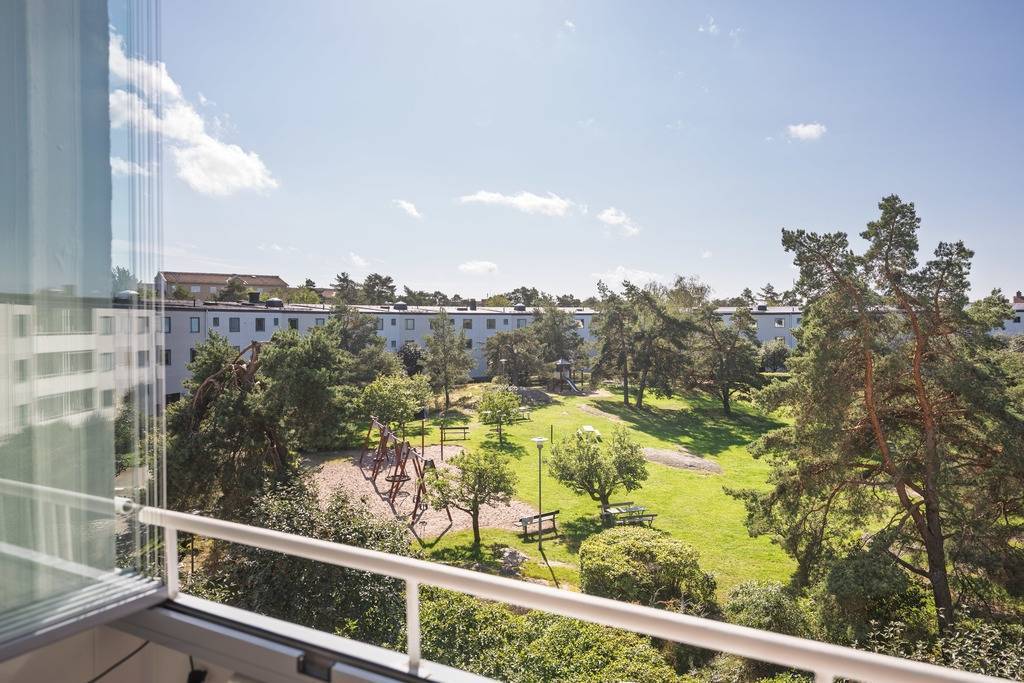 En stor och ljus lägenhet som ligger på en idyllisk gård med stora grönområden och en liten skog som är naturreservat just utanför. Dessutom är det utmärkt kollektivtrafik i området med en buss var 5-10 minut. 15 minuters promenad längs vattnet till restauranggatorna på Södermalm.
