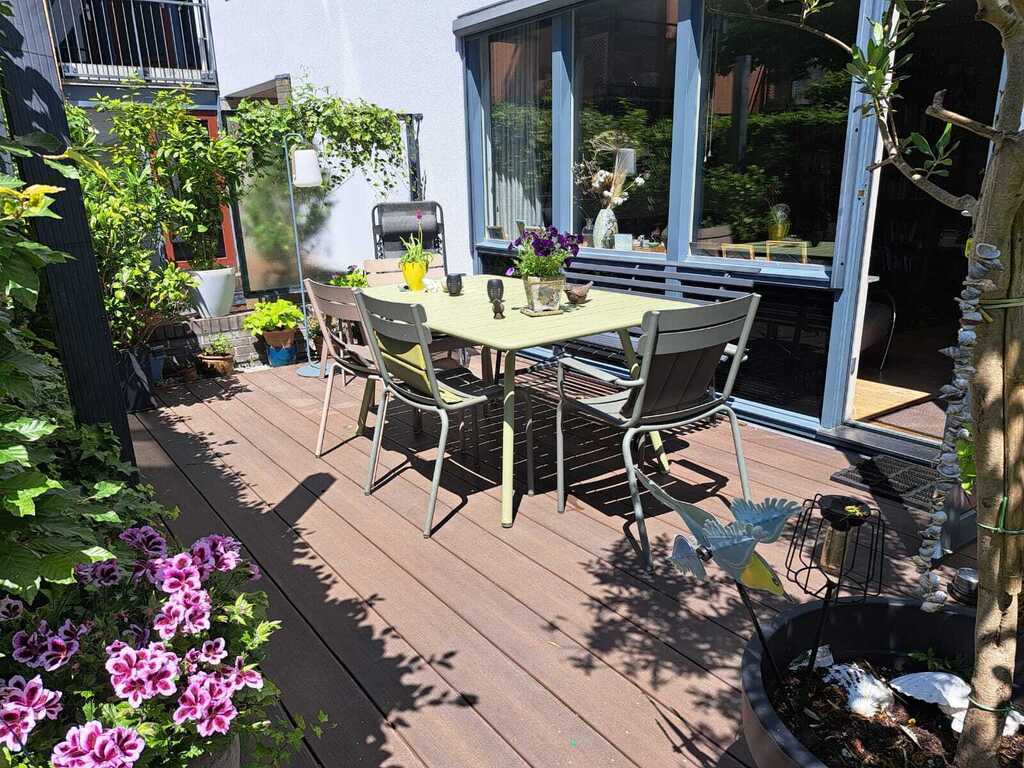 Our communal garden Een van de zithoeken in de gemeenschapppelijke tuin Etentje buiten met dochter, kleindochter , schoonzoon en zoon