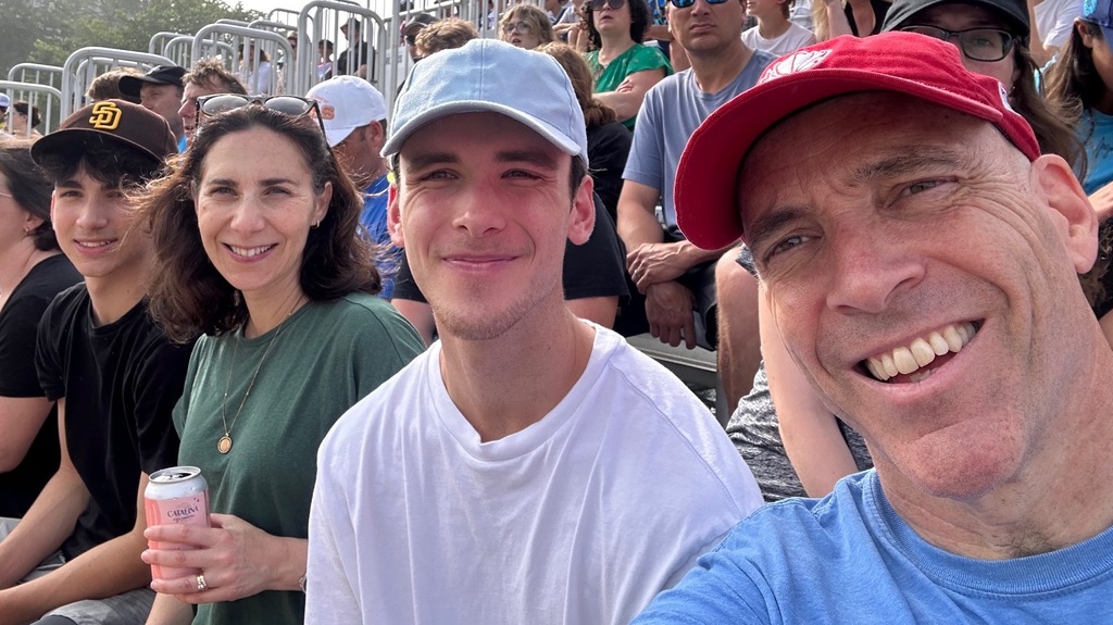 We are a family of four, including David (aka, Dad), a writer, Maria (aka, Mom), a family doctor, Jacob, 22, and Pete, 18. The 'fifth Beatle' is a dog, Philo, a large Golden Doodle.